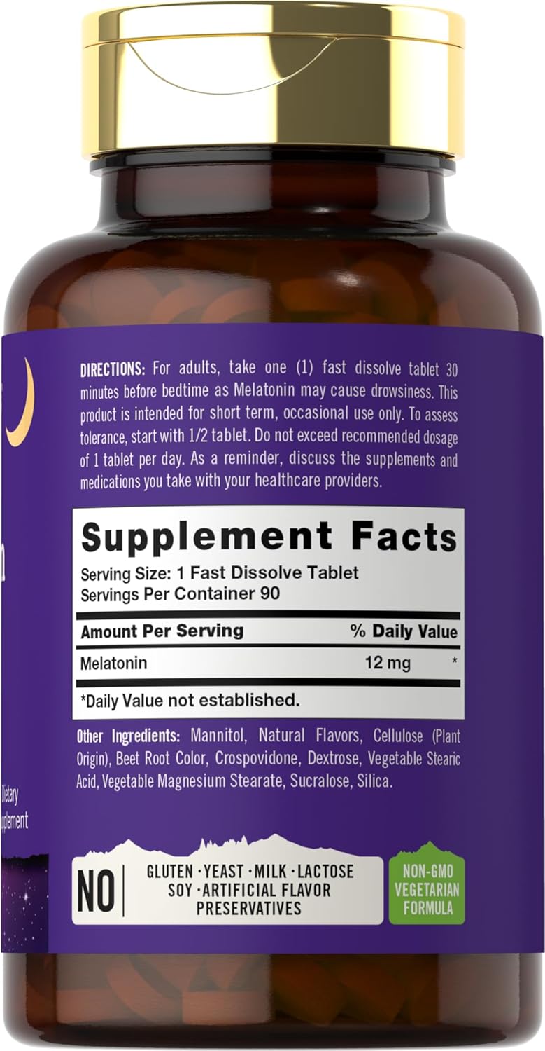 Tahoe Nutritionals ofrece una potente dosis de 12 mg de melatonina en tabletas de rápida disolución con delicioso sabor a frutas del bosque. Ideal para quienes desean conciliar el sueño más rápido y mejorar la calidad del descanso de forma natural.
